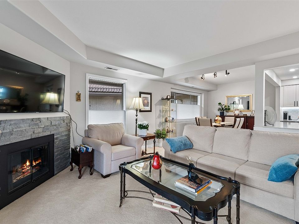 Beautiful recently updated 2 bdrm+ 2 bath quiet corner unit w/large patio in the sought after Mission Park Place. Updated kitchen, new paint, flooring, window coverings, new furnace+a/c, new central vac. Short walk to medical, shopping, restaurants, beaches. The ultimate in carefree living to be found at the sought after Mission Park Place, located in beautiful Lower Mission. This corner unit has an amazing east-facing patio on the quiet side of the building. Open concept, granite counters in kitchen, bar area, laminate flooring, and freshly painted throughout. Surrounded by lush landscaping it's the best spot in the Okanagan to soak up the morning sunshine or enjoy cooler summer evenings. This well maintained unit has an open plan with cozy corner gas fireplace, forced air heating, central a/c and central vacuum. Spacious laundry room with side-by-side washer and dryer, plus 1 indoor and secured parking space and a separate storage unit too! This popular complex has a common room with a kitchen, craft room, workshop and exercise area. The complex is 55+ with no pets. Extremely, well maintained with mature landscaping and a recent facelift of new paint and carpets in the hallways.