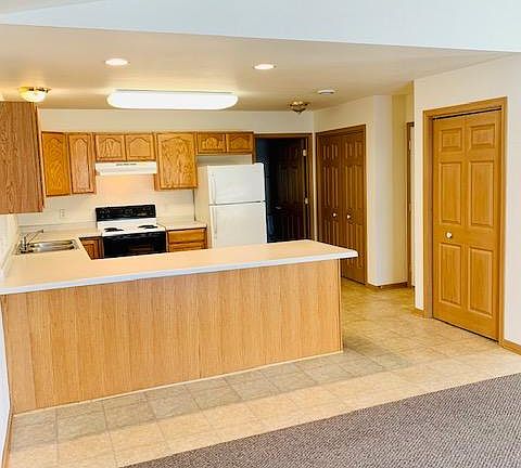 These apartments have two bedrooms, 1.5 bathroom, 2 car garage, and include a dishwasher, washer/ dryer, fireplace, and a patio/balcony. They are in an 4 plex one level building located behind Target and Menards near Oakwood Mall in Eau Claire. Each unit is provided with one designated parking spot, there is no cover or garage parking.