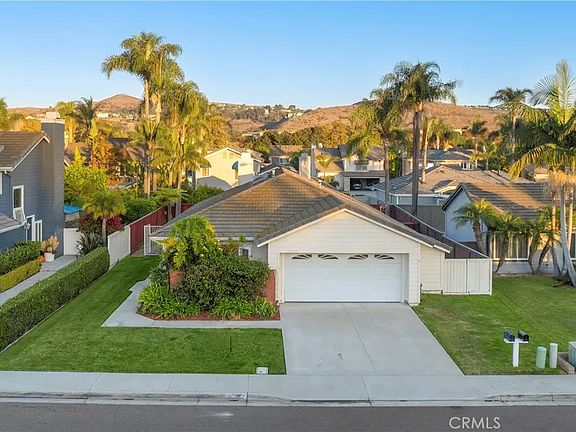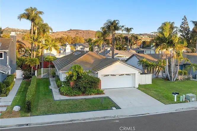 This single-level, 3-bedroom, 2-bath gem offers incredible potential for equity growth, making it quite possibly the best value in Dana Point. Nestled in the Stratford at the Pacific community one of Dana Point's best-kept secrets this home boasts a wraparound yard with lush gardens and is surrounded by flat, wide streets, community spaces, and cul-de-sacs. Located just moments from Doheny State Beach and Dana Point Harbor via the San Juan Creek bike trail, the home is ideal for those seeking an active, coastal lifestyle. Inside, enjoy vaulted ceilings, skylights, and a fresh update with new flooring, paint, fixtures, and more. The primary suite offers two closets, a private ensuite bath, vaulted ceilings, and a serene patio space. The secondary bedrooms are thoughtfully separated from the primary suite one currently serves as a home office with custom-built cabinetry.