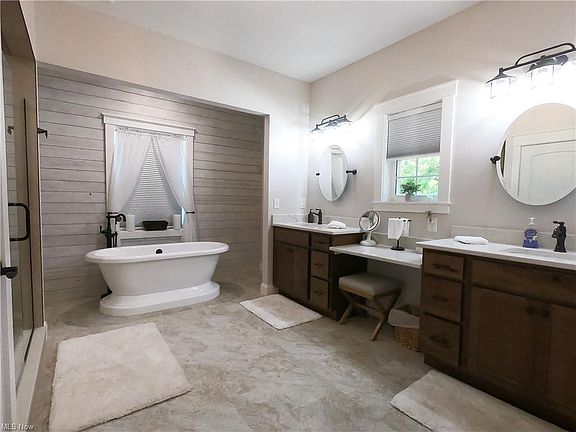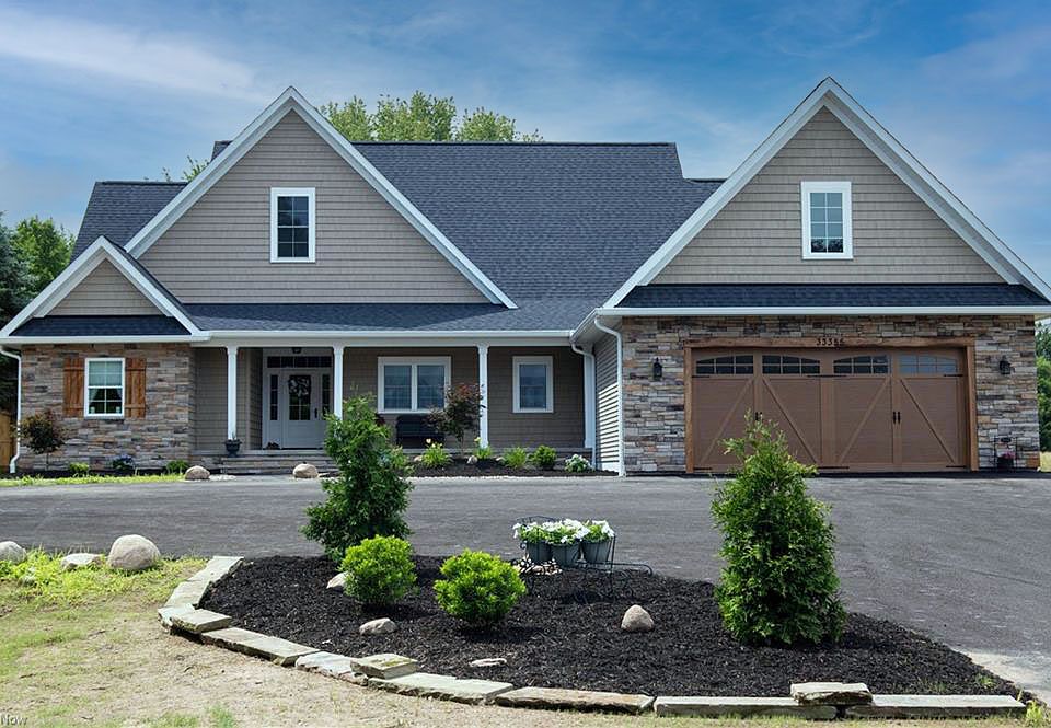 Experience a rare piece of country in the city! This brand new 2,905 square foot custom-built farmhouse ranch provides the beauty and serenity of country living with all the features of a modern luxury home. This 3 bedroom, 3 full bath home is located on a deep, partially wooded 3.5 acre property surrounded by farms. Enter from the spacious front porch to find a breathtaking, hardwood-floored family room with a stone hearth fireplace, high-vaulted rough sawn panel ceiling and wood beams. The open floor plan leads you to the modern kitchen fully custom built with upgraded appliances and granite counter tops. The master suite is an escape, featuring tray ceilings with stepped crown molding, custom accent lighting, and a private bath with his & her sinks, quartz counter tops, freestanding pedestal tub and a spacious walk-in shower. Extra wide hallways lead to the additional bedrooms and baths, a large first-floor laundry room, and access to the deep 2.5 car garage. Incredible views await on a beautifully finished rear deck, accessed from either the living room or the master suite. French doors lead to a spacious sitting room, and a large bonus room makes a perfect home office. Authentic architectural detailing is prevalent throughout. Enjoy the convenience of Smart Home technology. Too many upgrades and amenities to list-this home must be experienced in person. Minutes from Crocker Park, Avon Commons and Cleveland Clinic. A unique living experience ready for you to move in!