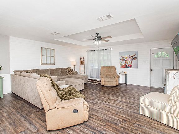 Looking for a move-in ready home with some space between the neighbors and no HOA? Your search can stop here! This three-bedroom, two-bathroom home has been well-maintained and is situated on a 3/4 acre lot. When you enter through the front door, you'll notice the living room boasts a tray ceiling, custom shiplap accent walls, and laminate flooring that runs throughout the living area, dining room, and kitchen. The house features an open floor plan but has a designated dining area that is spacious enough to accommodate a large table for your family or entertaining. The kitchen features a large island with barstool seating, stainless steel appliances, a gas cooktop, and a pantry. The primary bedroom is a true retreat with two closets and an attached en-suite bathroom. One of the additional bedrooms is a great size, easily accommodating two beds and the other bedrooms is perfect for a child's room, guest room, or home office. This home also features an additional room that's currently being used as a craft room/storage area but the options are endless. The amenities extend outside and include but are not limited to: a rear carport, a covered back patio, and multiple covered storage areas. Schedule your showing for this unique home, today!