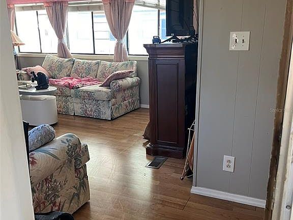 One or more photo(s) has been virtually staged. Check out this well maintained and cared for home in a very active 55+ community with a low maintenance fee of $143.00 per month includes garbage service, lawn maintenance, year around heated pool (Pool is going to be replaced for brand New Pool) Clubhouse with onsite manager and Shuffleboard. Home features newer kitchen, walls are drywall and freshly painted, finished Florida room with Thermopane windows. Home is furnished and move in ready. This is not a drive by must see inside to appreciate. YOU WILL OWN YOUR LAND! Measurements are approx. All information is deemed to be accurate and for the buyer and/or their representative to be verified. Sold As Is. More pictures to come soon.