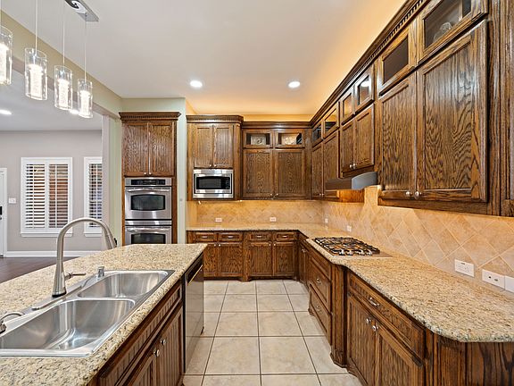 This luxurious updated home is nestled in the coveted gated community, Heritage Lakes. This well-appointed 1.5 story is perfect for multi-gen families or a grown child wanting their own space with 3 bedrooms downstairs with 1 bedroom, full bathroom, game room & media complete with Atmos surround sound upstairs. New roof, new flooring in bedrooms & upstairs (zero carpet), microwave & stained board on board fence completed in 2025. Enclosed driveway by electric gate plus Ring system & cameras provide extra privacy and security. High ceilings pull you down the hall into the open concept living room ready to cozy up by the gas fireplace. The kitchen is a chef's delight with large island, granite counter tops, stainless appliances plus double ovens, gas range, true venting hood & smart controlled uplighting. Primary bedroom is secluded at the back with a tray ceiling, updated elegant en-suite bath with separate vanities & custom walk-in closet with soft close drawers. French doors adorn the formal study accented by coffer ceiling & custom cabinetry. Your commercial grade tiled garage complete with wall unit a/c and insulated wooden door is waiting for your classic car or make your home gym. Come into the laundry and mud room, accented with backsplash, utility sink & built-in ice maker. All bedrooms have walk-in closets plus additional storage is abundant. Networking updates include commercial Wi-Fi access point to boost signal & ethernet cables installed in multiple locations. Updates include water softener, recessed lighting, fans, pewter door fixtures, landscaping, & push-to-connect hose bid with a built in shut off valve for winter! Plantation shutters finish the home with style. Owner Pays HOA and you get to enjoy all Heritage Lakes has to offer! The Community has resort-style amenities including a renovated 6,000 sqft amenity center with fitness center, pool & lazy river, cabana, hot tub, lap pool, playground, basketball court, catch & release ponds, golf course, & a calendar full of community events. Only 22 miles to DFW Airport & commute to Dallas under 30 miles.