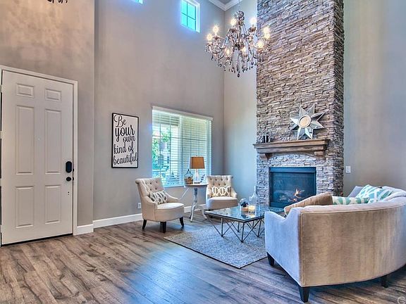 Gorgeous Sky Ranch Estate 4 bedroom/3 bathroom home located in a quiet cul-de-sac in South Corona that shows like a model home. The majestic entry features beautiful Z-Gallerie chandeliers with an amazing fireplace that runs floor to ceiling. The upgraded chef's kitchen features Viking Commercial Series appliances, a farmhouse sink, granite counters, glass and limestone backsplash, custom island with storage with custom lighting. The tailored butler pantry has glass door cabinets with a wine refrigerator and a walk in Pantry. The downstairs bedroom and bath are great for guests. The beautifully done wood laminate flooring takes you upstairs with the custom wrought iron staircase with white trim. The Master bedroom is large with a bathroom that has tailored shaker cabinets with granite. All bathrooms have granite counters for a more unique look. Other amenities in the home: LED recessed lighting throughout the home, upgraded baseboards and crown molding, lighting inside cabinets as well as new paint. The backyard is pool size with landscape that requires very little maintenance and block walls for privacy. The outside of the home was very recently painted. This home is a show place and is ready for your entertaining!