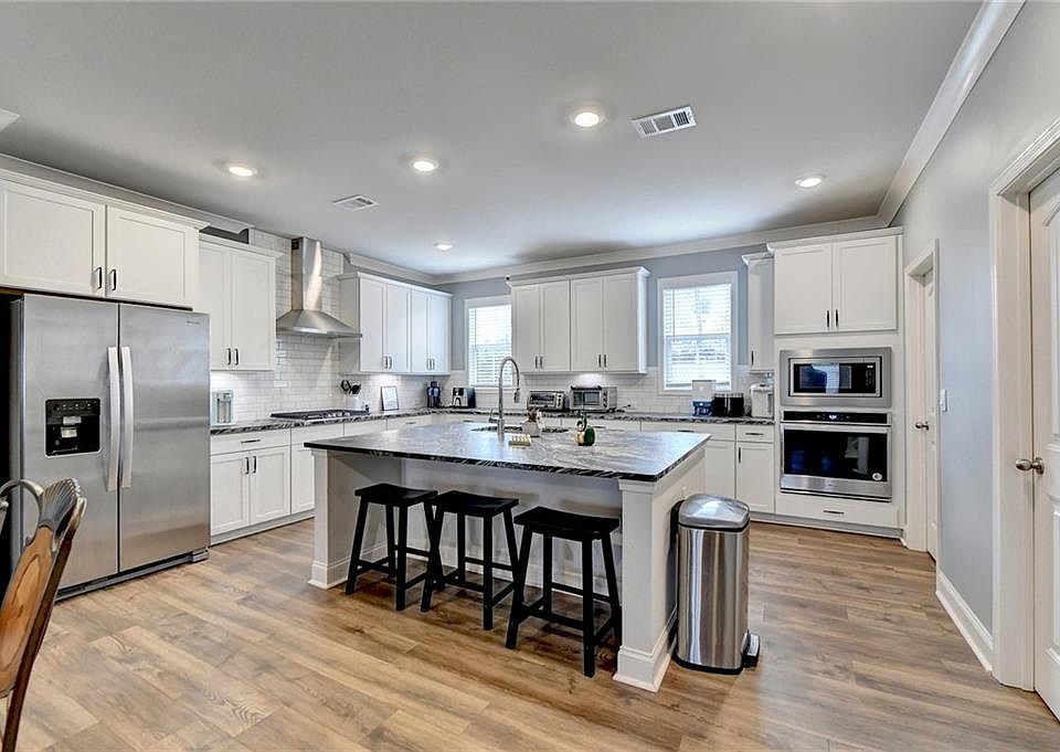 - Features: Breakfast Bar, Eat-in Kitchen, Kitchen Island, Pantry, Stone Counters, View to Family Room