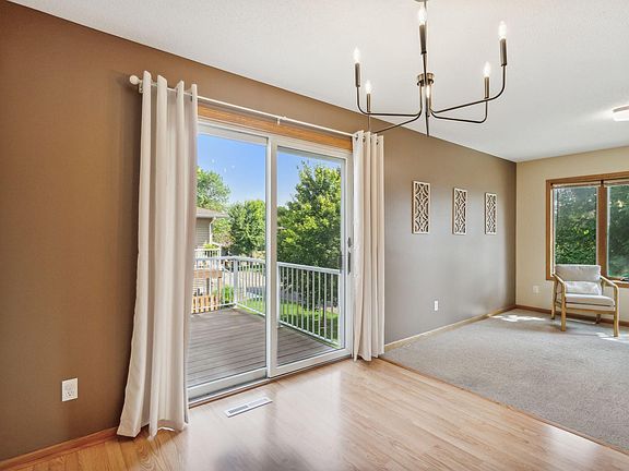 Welcome to your new home! Nestled on a quiet dead-end street, this bright and well-maintained end-unit boasts lush greenery and mature trees, offering a serene escape just steps from Sunny Acres Park. With easy access to biking and hiking trails, and a dog park, you'll have endless opportunities for outdoor fun. This spacious 3-bedroom, 2-bathroom home features updated lighting fixtures and great flooring throughout. The upper level shines with a sunlit living room with large bay windows, a kitchen with stainless steel appliances and a breakfast bar, and a dining room that opens to a private, maintenance-free deck. The large primary suite includes a walk-in closet, second vanity and sink, and a walk-through full bath. The finished lower level offers a third bedroom, a 3/4 bathroom, and a cozy family room with a sliding glass door leading to a concrete patio. Located near the Vermillion River and Falls in beautiful Vermillion Park, and just minutes from great dining options with stunning views of the Mississippi River and the Historic Hastings Bridge. This home combines convenience, natural beauty, and modern amenities, making it the perfect place for you!