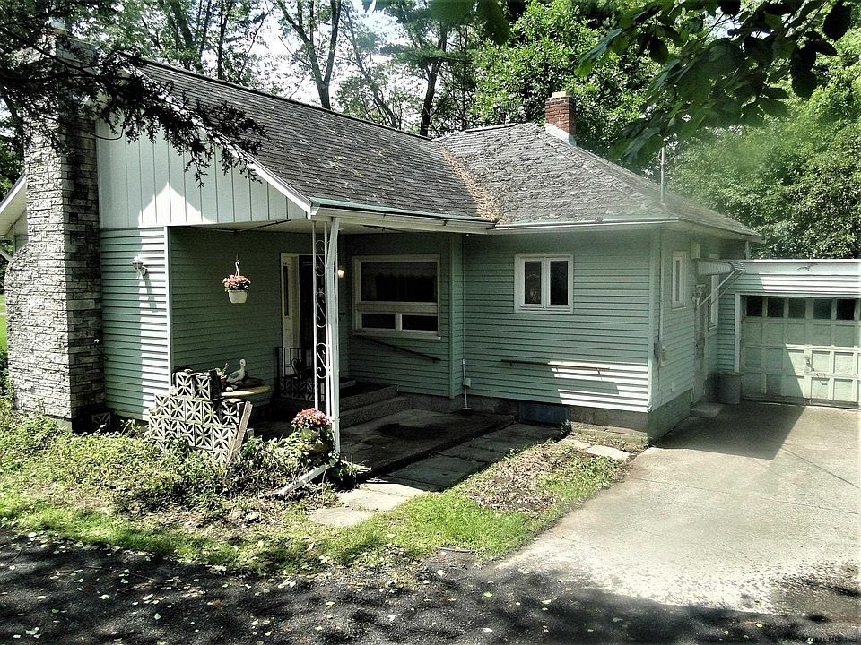 Adorable 2 bedroom, 1 bath Ranch. Hardwood floors, red oak, original woodwork. Propane fireplace (field stone). Carrier central air. Cedar closets in both bedrooms. Set on 1.33 acre private lot. With attached garage. And in back, large stone garage with loft. New sump pump. With some love, this home can be great for downsizers, or rental. Sold as-is. Easy to show!