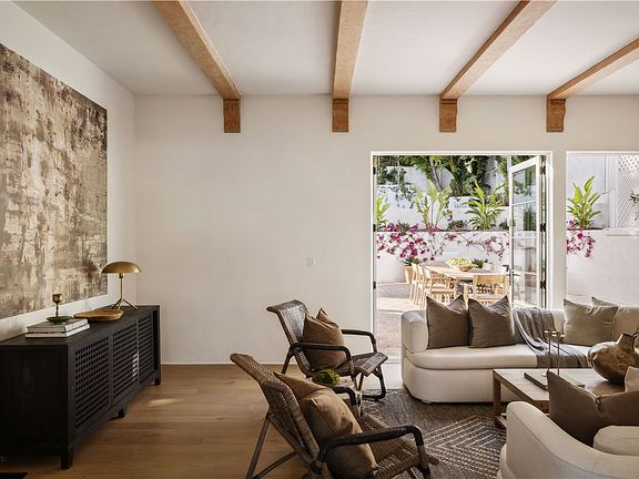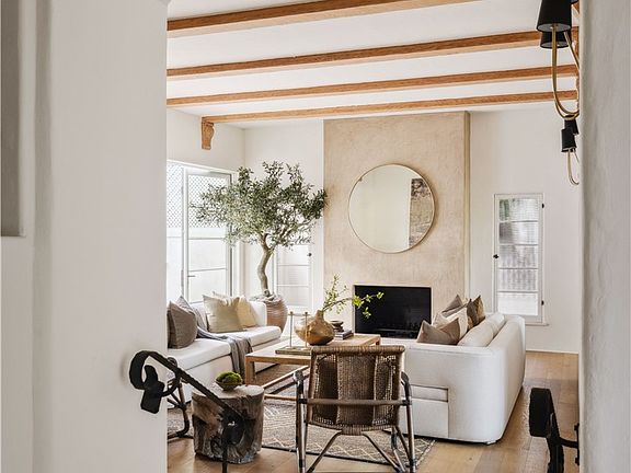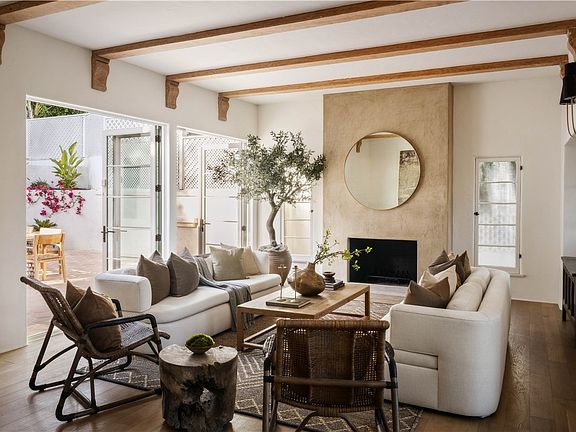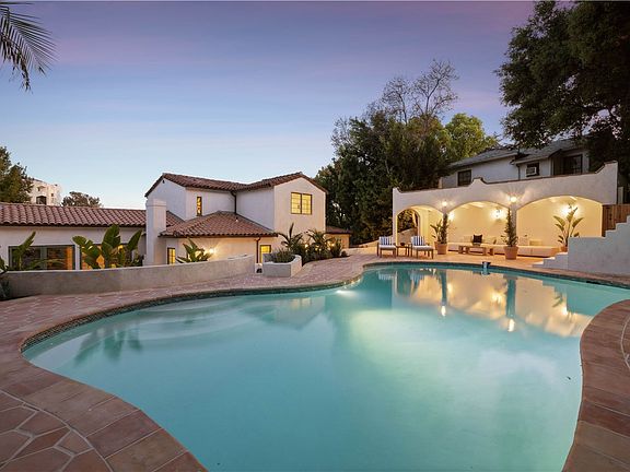 Set on a quiet, tree-lined street in prime Los Feliz, this 4-bed, 4.5-bath Spanish Revival blends old-world charm with thoughtful, modern updates. From the moment you step inside, you’re greeted by original arched entryways, hand-troweled plaster walls, and dramatic living room with soaring ceilings and exposed beams that instantly set the tone. The living room centers around a stately fireplace, filled with natural light and character. Off to the side, a cozy piano room offers the perfect creative escape or reading nook. The kitchen is a masterclass in design—custom cabinetry, marble countertops, and generous storage all flow into an intimate formal dining room that’s ideal for both quiet dinners and lively conversation. Upstairs, the primary suite feels like a private retreat with two walk-in closets and a spa-like bath with timeless finishes. Each of the additional bedrooms features its own en-suite bath, offering both privacy and comfort throughout. Out back, Saltillo tile floors carry the Spanish character outdoors, surrounding a beautiful pool, lush landscaping, and a dreamy loggia built for lounging, dining, and long afternoons under the sun. All this in one of LA’s most beloved neighborhoods—close to Griffith Park, local cafes, boutiques, and the best of the Eastside—this home offers the perfect balance of architectural integrity and laid-back California luxury