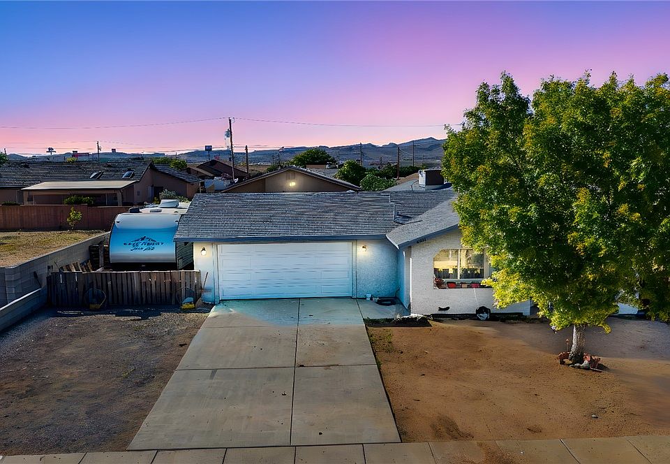 Begin your next chapter at 3337 Lomalai St. located in the desirable Greater Kingman Addition! This 2003 single-family home offers a welcoming 3-bedroom, 2-bath layout designed for both comfort and functionality. Step inside to an open-concept living space that seamlessly connects the living, dining and kitchen area perfect for entertaining or casual family gatherings. The galley-style kitchen is appointed with laminate countertops, a new gas stove, dishwasher and direct garage access for added convenience. A high-top breakfast bar and a charming casual dining area accented by a chandelier make mealtimes inviting, pleasant and easy. The primary suite features a walk-in shower, extended vanity with generous counter space and a spacious walk-in closet. Both guest bedrooms include walk-in closets and share a full bath with a classic tub/shower combo. Enjoy outdoor living on a covered front patio with a security screen door, a spacious backyard offering endless potential and a private fenced-in pet area. Additional highlights include; tile and vinyl flooring throughout, modern fixtures, ceiling fans, a new garage door, laundry setup in the garage, RV parking with hookups alongside the home and a stately mature tree graces the front yard offering natural shade and enhancing the home's inviting curb appeal. Enjoy the benefits of low taxes, no HOA and all that Kingman has to offer!