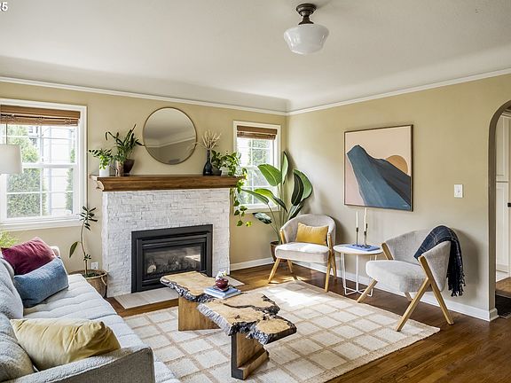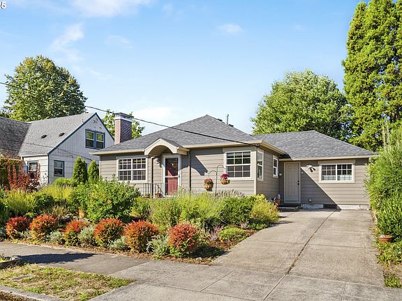 If South Tabor has been beckoning you this Summer, this beautifully updated bungalow might be the one to call home this Autumn. Experience warm September sunshine pouring into the ample windows onto original oak hardwoods at this 1942 SE charmer. From the front porch, step into this meticulously maintained home & find the single level, open floor plan you’ve been seeking. Featuring a stylish gas fireplace, arched doorway, and custom window treatments, the front living room flows into the dining room and gorgeous kitchen. Quartz countertops, tiled backsplash, stainless steel appliances with an upper double door fridge bring comfort & function to every elaborate meal or midnight snack prepared here. Each bedroom boasts a double closet and garden views, while the modern bathroom features double sinks, a comfortable tub/shower, and great storage. The private back primary bedroom, with an extra-large walk-in closet, could become a flex space for additional family room or creative studio. Updated light fixtures, hardware, and incredible storage closets throughout. While this easy flow floor plan sings with a move-in ready glow, the sweetest song can be heard outside in the spectacular front and backyard gardens. Ready to call the native bees & hummingbirds in SE your daily guests? The pollinators surrounding the property offer year-round bounty with their colorful blooms and low maintenance care. Enjoy spending mornings greeting the sunrays out front with the lavender and irises, while afternoons and evenings are indulgent on the large, covered patio. Variegated hostas line the pea graveled paths leading you to established garden beds, mature plantings, & a small lawn for your pets who can romp safely in this fully fence, majestic backyard. Insulated 120 sq ft shed offers extra storage or possible workshop & the long driveway out front is great for boat or RV parking. Enjoy the quiet of South Tabor w proximity to local amenities in FOPO.Walk score 91 & bike score 99! [Home Energy Score = 3. HES Report at https://rpt.greenbuildingregistry.com/hes/OR10204449]
