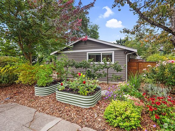 Quiet and charming Mt. Baker home renovated with Craftsman style choices and central A/C. Featuring airy vaulted ceilings in the entry, living and dining area and large south & west-facing windows. French doors open to a spacious deck & fully fenced yard. Large professionally landscaped yard with mature native plants, newly-installed raised beds, perennials, an herb garden, berry bushes, a private deck & large shed. Corner lot with only one neighbor and off-street parking. Primary suite w/ ensuite bath and walk-in-closet, add’l bedroom w/ensuite bath. Short distance to light rail, restaurants, grocery, parks & Lake Washington beaches. An oasis of greenery amid everything Seattle has to offer!