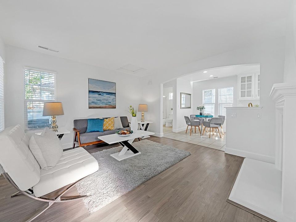 * Bright and open living room with fireplace perfect for relaxing and entertaining