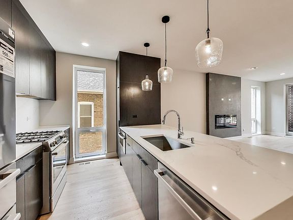 All Brick and High-Quality New Construction in Prime Avondale location, by Masonry contractor/ Builder with 25+ years of experience. Located on a tree-lined street, this boutique development on a double lot offers great outdoor spaces and an elegant Only two-story design that's perfect for those seeking a blend of comfort and style in a tranquil setting. This 3 Beds Plus Den/Office, 2.5 baths Duplex unit offers 2 levels of living space along with a spacious front balcony, the sleek design and attention to detail. Custom finishes throughout, an open kitchen with a large 4 sittings peninsula with waterfall edge and Premium Bosch appliances, top-quality floor to ceiling flat panel cabinets, pantry closet, tons of storage, hardwood floors, solid core doors, quartz countertops and oversized European multi-position windows that admit Tons of natural light...makes this home truly rear find and Great Value for the space and location. Perfectly located just about 0.5 mile from CTA Blue Line and local stores, restaurants, gyms nearby and easy access to I 90/94. Garage parking included in price.
