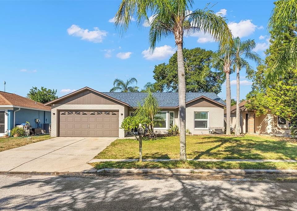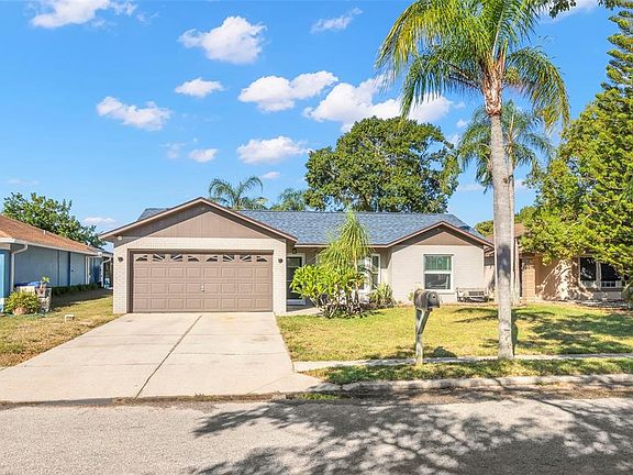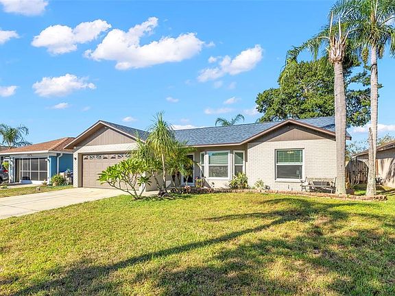 Wow! Look no further! Located in a desirable location, this beautiful 2 bedroom, 2 bath pool home offers 1,093 sq. ft. of living space in a peaceful, established neighborhood with no HOA and NO FLOOD INSURANCE REQUIRED! Enjoy your own private oasis with a sparkling screened in pool- resurfaced with pebble tech in 2018 with an upgraded pool pump, LED lights, and features a 5ft. custom tile manta ray in the center. Expansive decking area is perfect for relaxing or entertaining. Enter the inside through the brand new front door (2025) and experience the quiet and safety from the Cat 5 hurricane impact resistant windows and sliders (2018). Additional major updates include AC (2022), roof with solar attic fan (2024), Samsung washer and dryer (2017), carpet (2015). Comfortable airy floor plan with a bright kitchen with Frigidaire appliances and split bedrooms. Spacious 2 car garage. This move in ready home provides quality updates and minutes from shopping, schools (walking distance to Anclote Elementary) restaurants, beautiful Gulf beaches, 2 international airports, completely renovated Centennial Park, newly renovated library where they have classes for all ages, newly renovated Main St in New Port Richey with Sims Park. Come look today!