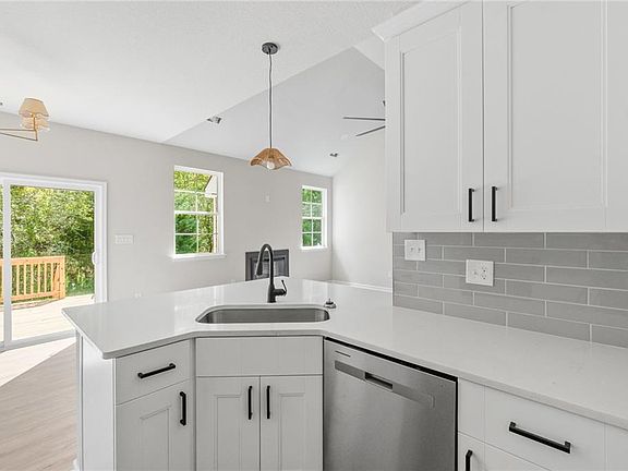 Quartz countersTiled back splashRear deckVaulted ceilingsDouble vanityStainless steel appliances