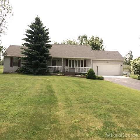 Stop your house hunting! This pristine ranch on 2 ACRES has it ALL! Brand new updated kitchen with door-wall leading to a beautiful HUGE deck. Deck overlooks quiet yard for nature watching and relaxing enjoyment. TWO outdoor sheds for extra storage. Great room boasts a beautiful bow window.Master bedroom has walk in closet & Master bath.Finished basement w lifetime warranty w/ Be dry. Long private circular drive. Huge attached & freshly painted 3 car garage. Low Twp. taxes.Highly desired East China Schools.