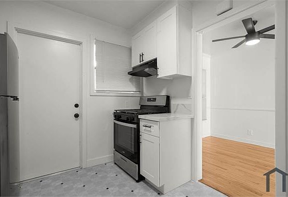 Smoke extractorNew flooringQuartz countertopsCeiling fanShower with bathtubGarbage disposalLarge closet