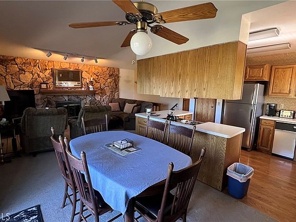 Owner is offering below market financing! Welcome to your Mountain Retreat! Beautifully blended contemporary design with rustic elements, 4 bedrooms 2 full bathrooms perfect for those large family gatherings. When you first enter you'll notice a large entry with 2 bedrooms 1 bedroom has a fireplace, 1 full bathroom along with a game room or media room, workshop or a family room. With over 1900 sq ft this cabin has a great potential for short term rental. Well designed layout and plenty of shared living spaces, the upper level's open living, kitchen and dining area lead out to a great entertaining deck with great views. Property goes from street to street with a parking deck located on Falling Leaf Dr. for winter access. Owners may carry mortgage note.