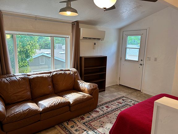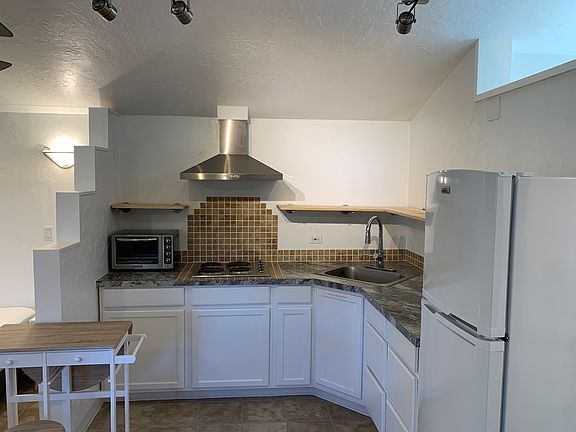 -350 square foot upstairs studio apartment with private entrance. Partially furnished with bed, nightstands, couch and breakfast nook. -Located in old Moab. Easily walk or bike downtown. -Kitchen includes: fridge, stovetop, toaster oven. A microwave and TV can be provided. All appliances are fairly new. -Newer mini split for heating and cooling which is very energy efficient. -Has a small balcony with views of the valley. -No smoking or pets. -The following utilities are provided: water, sewer, garbage. Electricity is usually around $40.Other utilities such as cable or internet access are the responsibility of the tenant. -Lease for six months minimum. Owners provide the following utilities: water, sewage, garbage collection. Electricity is usually anround $40/mo. Other utilities (like internet, cable) are the responsibility of the tenant.
