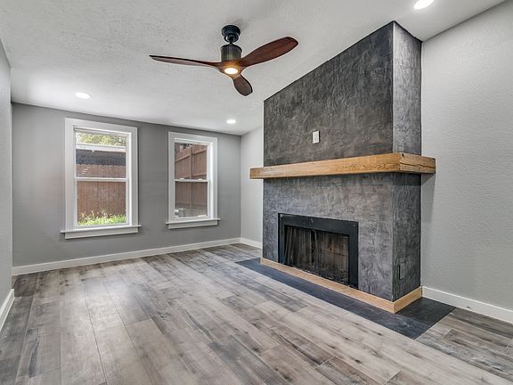 Modern ceiling fansAccent fireplace wallFresh paintPrivate fenced yardUpdated flooringWood-look flooringStainless steel appliances