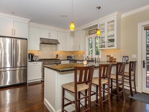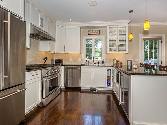 If you like charm & character then this is the house for you. Move right into this fully renovated home designed with today's lifestyle in mind. First level offers 8-1/2 foot ceilings, all hdwd floors, kitchen w/custom white cabinetry, under-cabinet lighting, granite counters, travertine backsplash, 36" gas range, microwave, beverage fridge, DW, Disposal, recessed lighting, crown molding. Living room w/coffered ceiling & access to outdoor covered patio. Formal din. rm w/crown molding & built in shelf with decorative lighting. 1st level, den/office with French patio door to large deck overlooking 18X40 heated inground pool. Full bath is all marble w/rain shower head & Grohe fixtures. Second level has 3 BRs including Master with 9' ceilings, hdwd floors, & huge custom walk in closet, 2 more BRs w/great closet space, hdwd floors. Bonus space in hallway w/recessed lighting is perfect for small office or homework area. Too much to list, see attachment for full list.