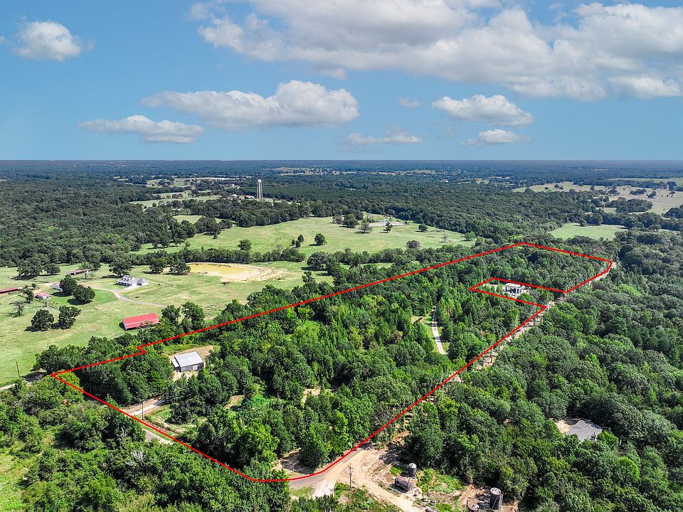 Tucked behind trees on 24 acres, south of Como, is where you'll find this 2bed-2bath cabin-y barndominium! A gated entrance provides additional privacy on this wooded tract. Enjoy the scenic setting and wildlife while sitting on a long front porch. Inside, you'll find light wood walls and a wood-beam ceiling with recessed lights. During cool Autumn nights or cold winter ones, stay toasty warm from a wood-burning stove with a stone hearth and wall. The kitchen includes granite countertops, an island with extra seating, stainless steel appliances, stone backsplash, and a walk-in pantry. You'll appreciate the split bedroom design that allows separate areas between the main ensuite bedroom and the guest bedroom. Marble countertops and walk-in showers with tile and bench seat are located in both bathrooms. The main bedroom also comes with a walk-in closet. Luxury Vinyl Plank flooring and ceiling fans are found throughout the home. The garage can also be accessed from the laundry room. Take a look at this 2021-built home located in a quiet area southeast of FM 1567, surrounded by woods and neighboring pastures!