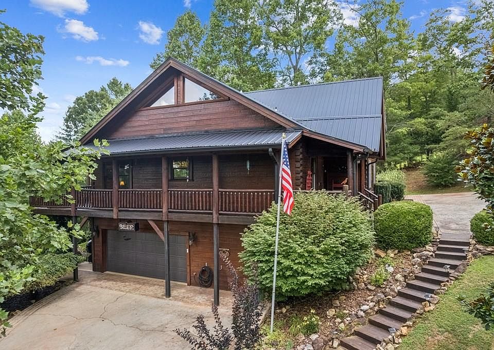 **Escape the Ordinary—Live the North Georgia Dream** Tucked away on 3 pristine acres just outside of Blue Ridge, this one-of-a-kind hand-hewn log cabin offers the perfect balance of rustic elegance and everyday comfort. Built in 2007 and proudly maintained by its original owner, this custom retreat invites you in with rich textures, a spacious open-concept layout, and quality craftsmanship throughout. The heart of the home is a striking great room anchored by a floor-to-ceiling wood-burning fireplace—perfect for cozy evenings and mountain memories. The enormous gourmet kitchen is a dream come true with granite countertops, a gas stove, and endless cabinetry and storage. Main-level living makes everyday life convenient, while large windows flood the interior with natural light and frame the wooded beauty outside. Thoughtful details like a wood-and-sheetrock interior, stamped concrete driveway, and metal roof add character and durability. Downstairs, the terrace level features a second fireplace with gas logs, and a generous bedroom with a full bath. Step right out onto the walk-out patio, a peaceful space to sip your morning coffee, soak up the sun, or breathe in the crisp mountain air. Whether you're watching deer wander through the yard or stargazing at night, this space was designed for unwinding. A 2-car garage offers ample storage, and the lush, well-manicured lawn gently rolls toward a quiet branch at the edge of the property. Short-term rentals are permitted, making this property a perfect choice for a full-time residence, vacation getaway, or income-producing rental. Conveniently located with easy access to Hwy 515, you're just minutes from Morganton Point Recreation Area with swimming, boating, kayaking, and picnicking—and a short drive to Mercier Orchards for award-winning hard cider, fresh pies, and wine tastings. Less than 2 hours to Atlanta's Hartsfield-Jackson Airport, yet a world away in peace and privacy. Call today for a private tour!