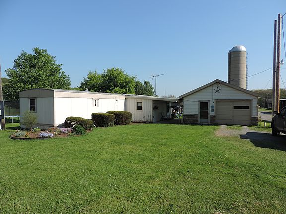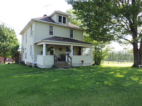 Craftsman Era beauty with original woodwork and hardwood floors, sited on 30 acres with 11 stall barn with wash bay and 3 stall stud barn, and INDOOR riding arena! 7 Pastures and 4 Nelson waterers make this ready for your horses. Century bank barn, silos, huge clear span building, machine shed, milk house and more provide this property with an abundance of outbuildings and storage. Also on property is clean 2 BR single wide trailer with addition, ideal for mother in law or potential for rental income.