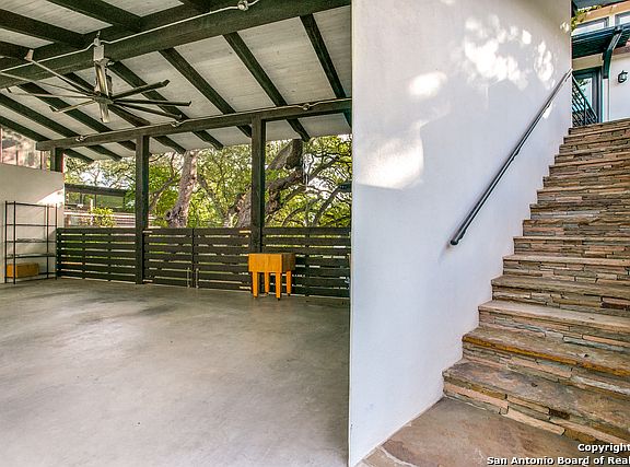 Stunning duplex in old Alamo Heights. Completely updated inside & out. Top floor unit with incredible downtown views on rooftop deck. Updated features include custom cabinets, wood floors, marble bath, 9ft ceilings, and charm galore. Living area is open to kitchen that has all SS appliances, Miele coffee machine, gas cooking, and island breakfast bar. Floor to ceiling double paned windows in living room. Loft opens to rooftop deck with gas grill.