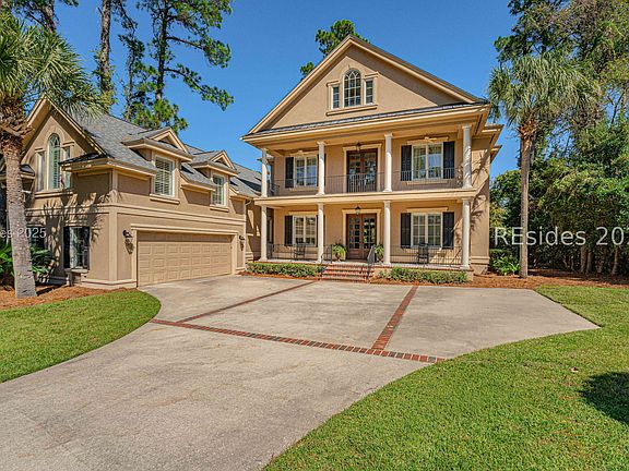 Livability meets luxury in this Palmetto Hall stunner. Bathed in natural light and showcasing custom millwork throughout this updated, 5 bedroom, 4 full/2 half bath house provides Lowcountry living at its finest. The downstairs boasts an updated kitchen with stainless steel appliances, warming drawer, and built-in banquet, perfect for family meals. The living room has tray ceilings, wet bar, and custom built-ins. The primary suite offers quiet luxury with a soaking tub and plenty of closet space. Above the garage, providing extra privacy and a kitchenette is an in- law suite ideal for multi generation living or guests. Spread out on the second floor with three bedrooms, dedicated office, and game/bonus room. The third floor is ideal for a home gym, studio, or media room. Step outside into the private and serene backyard with patio and firepit. Plenty of room for a pool. The beach is a quick golf cart ride away! From the open gathering spaces to the private retreats, this home embodies effortless family living.