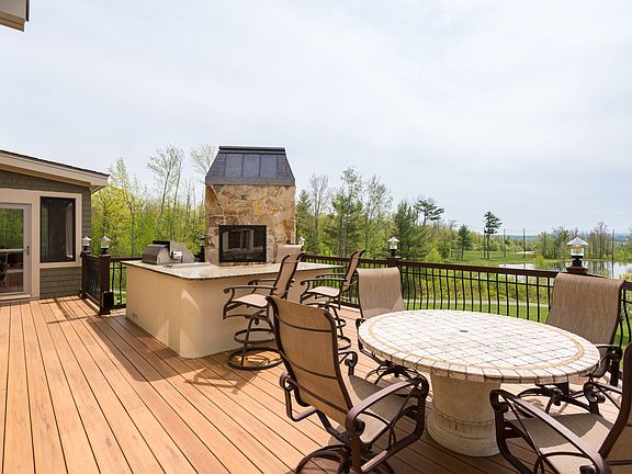 It is difficult to find a home with all the space and design elements this property offers, with the benefit year-round views and a lifestyle like no other. With a master suite on the first and second floor and two other bedrooms, this home is set up perfectly for generational living. The living space flows naturally from the kitchen and dining room into the large living room with wood burning fireplace, vaulted wood ceilings, and two story windows bringing the view right into your living room. The lower level offers all the space you need to entertain your friends watching the Masters or a movie on a Friday night in theatre room overlooking the course, or hang around in the family room bar area. After the weekend, break a sweat in the exercise room, which could easily be converted for more sleeping space. Design and details from the interior continue through to the outside spaces with mature landscaping, stone work, and retaining walls allowing for year-round enjoyment. The outdoor kitchen, with a gas burning fireplace, is a great space to enjoy meals and a view in the summer and fall. The fire pit outside the lower level is a great place to gather after a day of winter activities, cross country skiing or snowmobiling. Park your golf cart in one of the three attached garage bays and store all your toys in the one car detached garage. The extra finished heated space above the garage is a great opportunity to get away from distractions and set up your home office.