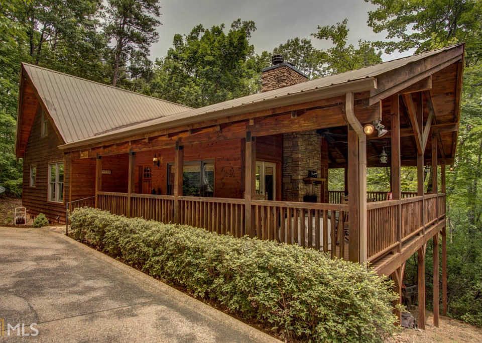 THE ART AND CRAFT OF SHELTER inspired by Western Design. Genuine wood construction beginning underfoot, continuing up walls & overhead in tongue and groove design. Just what you imagine in your North Georgia home. Park in the circular drive and step inside. Dry stack floor to ceiling fireplace catches your eye & the best surprise is it's matching twin on the oversized exterior lounging porch. Entertaining may begin in the kitchen with granite counters, custom cabinetry & dining space but friends will always gather on the surrounding porches. Each floor houses sleeping quarters & full baths and "dibs" will be declared as favorite perches are claimed. Terrace hosts secondary games/multi purpose room. Ideal second home Get-a-way or residence for a fortunate few
