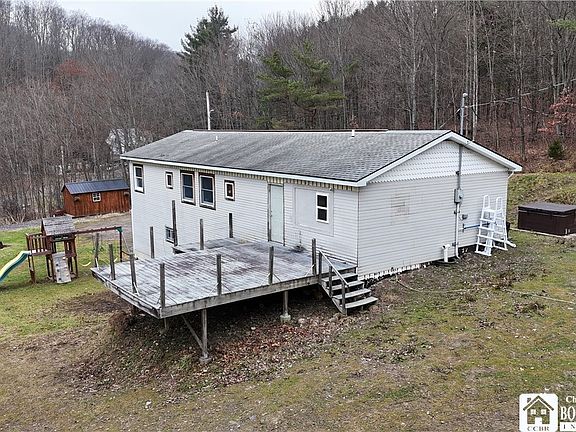 Welcome to 334 Madison Hill Road, Wellsville, NY a 3 Bdr, 2 Bath raised ranch with attached garage, above ground pool, hot tub and shed located on a total of 8.3 acres that includes 2 parcels— a truly special property nestled in the hills of Allegany County, offering an ideal blend of serenity, character, and community, overlooking the village. This home is located on a generous lot with mature trees and plenty of space for gardens, outdoor living, or future expansion. The house has bright, airy rooms filled with natural light, cozy living spaces—perfect for relaxing with family or entertaining guests. The first floor of this raised ranch includes primary suite with full bath that includes large walk-in shower, large kitchen with ample cupboards and eat at breakfast bar, large living room, 2 more bedrooms and another full bath. Off the back of the house is a large elevated deck that overlooks the village. The partially finished basement has high ceilings, concrete floor, laundry room and many possibilities for storage, additional bedroom, family room, etc. This home has a new central heating and air conditioning unit installed in 2021. There is also electric baseboard heat if preferred. The above ground pool and 6 person hot tub were installed in 2025. Included in the sale is a separate approximately 1 acre cleared lot with utilities that can be used as a building lot at the top of the property. POTENTIAL BUYERS MUST BE PRE-APPROVED BEFORE SHOWINGS.