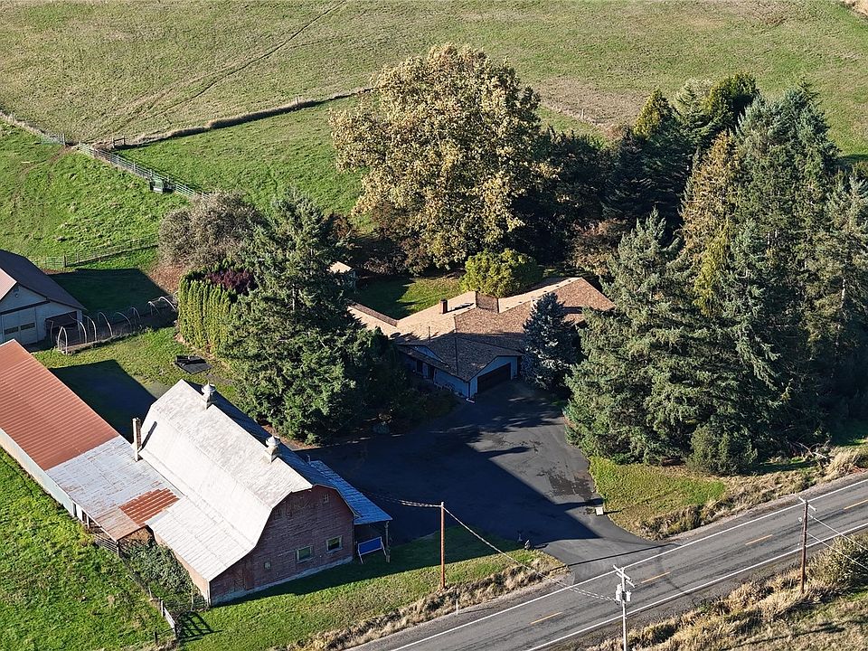Historic Barn, 4 stall newer barn, machine shed w/ 3 bed home all on 25 fenced acres. Come see this beautiful kitchen with gas range, oven, subzero fridge! Large kitchen, covered patio & breezeway to craft room. The new barn is horse ready with 4 stalls and heated tack, hay loft and concrete alley. Small building behind house is currently a craft room, could become an ADU.