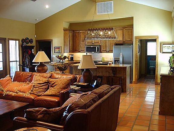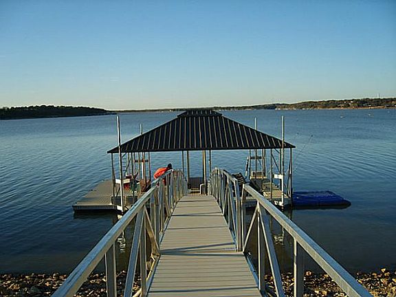 Custom-built in 2007, this fully-furnished lake home in the Oak Point Subdivision includes a gently-sloping 1.3-acre lake-front lot, 3 bedrooms and 3 full baths with a half-bath off the utility room. The open kitchen-living arrangement features a vaulted ceiling with rock fireplace and wonderful views of beautiful Lake Brownwood. Two-slip aluminum boat dock, fully-shaded outdoor kitchen, detached two-car carport and storage. Rock pump house.