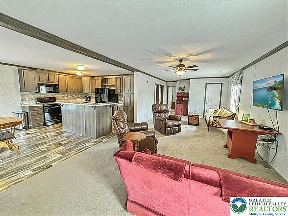 Country Living in a small 55+ Community –5 year young home was well maintained ... Home affords over 1200 of first floor living, lovely covered deck to watch the sunsets or the rainfalls, 2 Beds, 2 Baths , Central A/C, kitchen offers gas cooking and built in microwave. ALL Appliances remain, including the washer and dryer. Inside you'll find a bright and spacious layout, highlighted by a fantastic kitchen with a large center island to gather around, Ample counter and cabinet storage, pantry. The primary bedroom includes a private en-suite bathroom, large walk in closet, and the second bedroom is ideal for guests or a home office. Large Detached Garage 20x18 with electric and garage opener ideal for your vehicles, workshop, or extra storage & Storage shed . You will be delighted with this well-kept manufactured home, located in a quiet community surrounded by the beauty of the countryside and mountains. Situated on a rented lot, this home offers all the benefits of country living without the high maintenance.