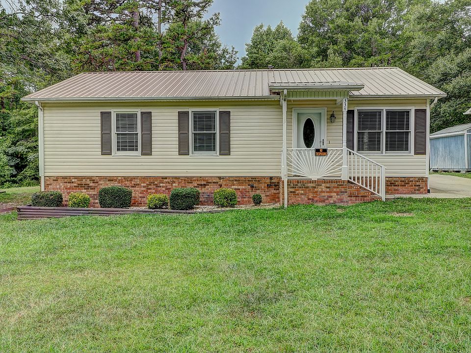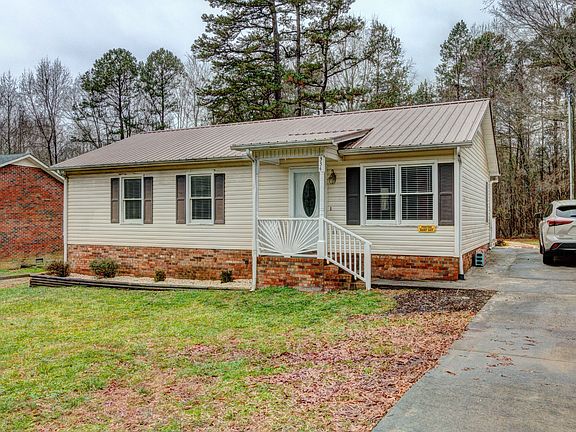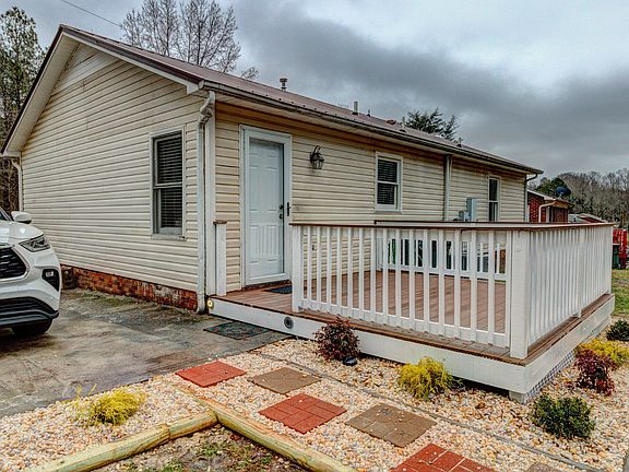 Cute, tastefully updated 3 bedrooms 1.5 baths house in Cherryville. The home was completely updated in 2019 with new doors, new appliances, countertops, fans and lights, a metal roof, and an HVAC unit. Further updates were just completed including fresh paint, floors, and more. The primary bedroom has a private half bath. The exterior features a concrete drive, a storage building, a stone walkway with a firepit, and a nice deck. Lawn service included. NO PETS!