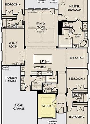 Stunning one story home with a three car tandem garage. Private study perfect for a home office. Gourmet kitchen featuring upgraded cabinets, quartz countertops, built-in oven, gas cooktop, walk-in pantry, and a center island open to the family room. Luxurious master suite with a private bath including a garden tub, oversized shower, double vanities and a walk-in closet. Spacious game room located off the kitchen. Three secondary bedrooms. Covered patio on back of home.