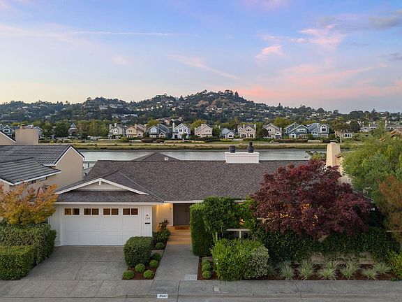 Riviera Circle where the living is easy and magical. Perfectly positioned on the deep water of Larkspur's coveted Riviera and just a short stroll to historic downtown, this single-story residence offers the best of Larkspur indoor/outdoor living. This resort-style 3 bed, 2.5 bath retreat blends the ease of single-story design with curated finishes by L&P Interiors in addition to effortless indoor/outdoor flow. Light-filled interiors open seamlessly to expansive waterfront decks, a Glass House' and pool, creating the ideal setting for entertaining, al fresco dining or relaxing by the water. Magazine-worthy details, including designer lighting and a chef's kitchen with handcrafted ceramic tile backsplash, a stunning island with Calacata Verde countertop, S. Harris wallpaper, are all set against the backdrop of serene water views. The private dock offers endless opportunities for kayaking, paddleboarding and boating bringing the magic of waterfront living right to your doorstep. Close to town, award-winning schools, the bike path, The Lark Theater and the soon-to-be-completed Larkspur Commons Library, together with the sound of the water, the feel of the sun, and the magic of Larkspur living make 334 Riviera Circle a special place to call home.