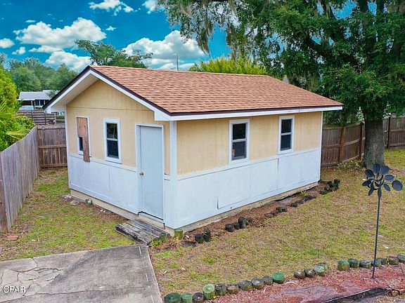 Discover a true Cove classic just two blocks from St. Andrews Bay! Surrounded by majestic live oaks draped in Spanish moss, this 3BR/2BA home offers timeless character and a flexible floorplan with multiple living areas, a dining room, and a bonus/flex room ideal for an office, hobby space, or playroom. A spacious family room with plenty of natural light anchors the home, and opens to the covered back patio overlooking the private, fenced yard — perfect for quiet mornings or weekend gatherings. The kitchen has several options to open it up and make it your own! The property features a single-car garage + covered parking, floored attic storage, and a large powered workshop with garage door and alley access — rare for the Cove and fantastic for tools, water toys, or golf cart parking. With a 2020 roof and upgraded double-pane windows in portions of the home, this residence is ready for its next chapter. Bring your vision and creativity — opportunities like this don't come often in one of Panama City's most cherished neighborhoods. Classic Cove charm. Solid bones. So much potential! Dimensions approximate, please verify if important.