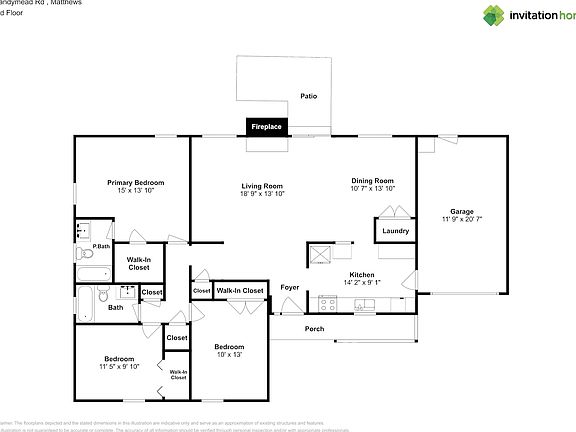 Home Features and Amenities: Air Conditioning, Covered Porch, Fenced Yard, Fireplace, Garage, Granite Countertops, Long Lease Terms, Luxury Vinyl Plank, Patio, Pet Friendly, Primary Bedroom on Main, Recessed Lighting, Single Story House, Smart Home, Stainless Steel Appliances, Walk in Closet, W/D Hookups, and professionally managed by Invitation Homes.
