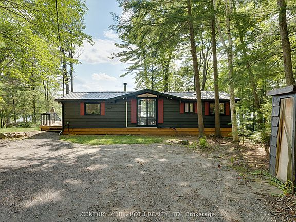 Welcome to Stewart Lake Cottage-the perfect four-season escape. Enjoy sunny South/West waterfront views on a generous, beautifully treed lot where you can soak up the sun all day and take in breathtaking star filled skies at night. Start your mornings with coffee overlooking the peaceful lake, then spend the day exploring by kayak or paddle board, enjoying backyard games, barbecuing, or relaxing by the fire. Unwind in the hot tub as you take in the serene surroundings. Recently renovated top to bottom in 2022, this charming cottage offers 3 bedrooms, a full bathroom, and ample parking. A rare feature, the property includes its own private boat launch, making lake access effortless. Additional storage is available under the deck and in the bunkie, providing space for all your seasonal gear. Whether you're seeking adventure or tranquility, Stewart Lake Cottage delivers the ideal getaway in every season.