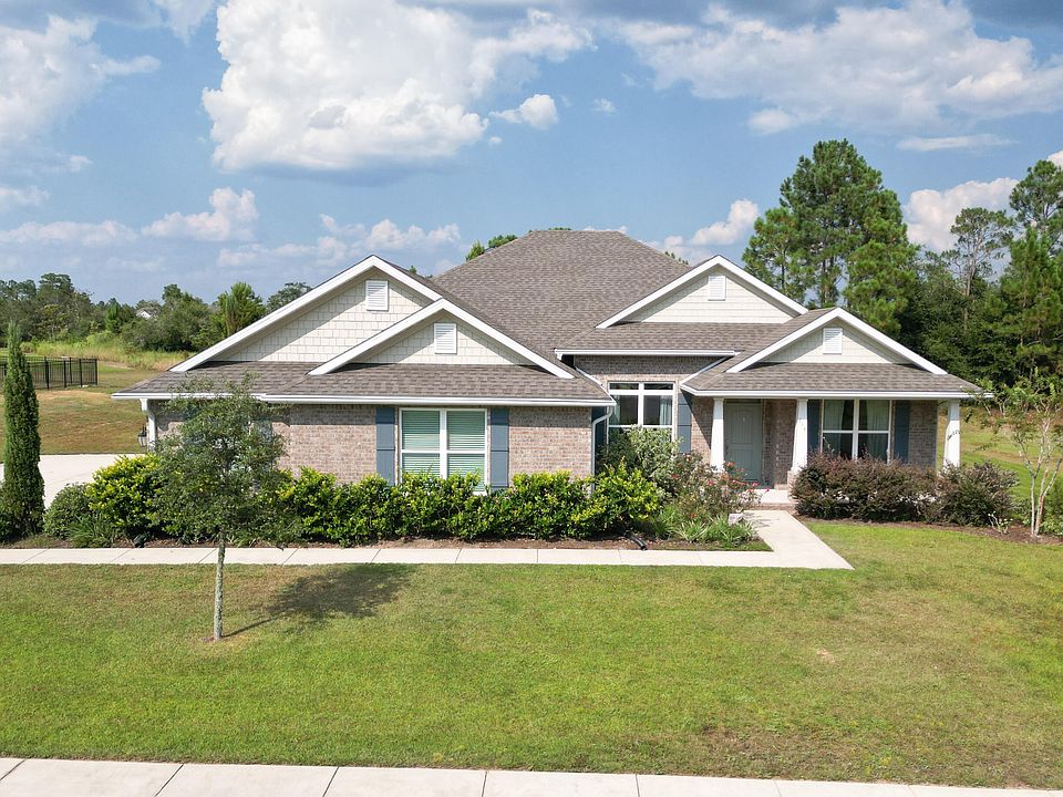 This beautifully designed 3-bedroom, 3-bath home also features a versatile bonus room, formal dining room, and a oversized 3-car garage. Set on a generous 0.79-acre lot backing up to the 8th fairway, you'll enjoy peaceful golf course and privacy from your large covered patio space perfect for relaxing or entertaining. Inside, the home features granite countertops, engineered vinyl plank flooring in the main living areas, stainless steel kitchen appliances. The open-concept layout flows seamlessly with a thoughtfully designed split floor plan, offering comfort and function throughout. The private owner's retreat provides a luxurious escape with ample space and style. Just 25 minutes from the sugar-white sands of the Emerald Coast, Windswept Estates offers premier community amenities including a community house, swimming pool, tennis courts, basketball court, and a playground. Don't miss your chance to own this stunning home in one of Freeport's most sought-after gated community!