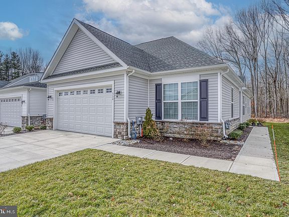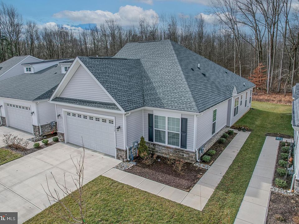 Welcome to this stunning Dupont model end-unit Carriage Style Home in the desirable community of Whispering Wood. Home backs to trees for privacy and tranquility. McKee builders is a premier 55+ builder in the Middletown area. Great open floor plan with upgrades galore! Upon entry you will notice the luxury vinyl plank flooring and an abundance of natural light throughout the home. Upgraded white, shaker style kitchen cabinets with soft close features that extend to the ceiling where they are finished off with crown moulding. Gleaming granite counter tops, a large kitchen island that offers room for seating, deep farm style sink, upgraded stainless steel appliances, gas range, recessed lighting and two pendant lights over the island complete the kitchen. Crown moulding throughout the home. The kitchen overlooks both the dining & great rooms. The great room has a tray ceiling with recessed lighting and ceiling fan. Spacious primary bedroom also has a tray ceiling with ceiling fan, large walk-in-closet, a beautiful private bath with tiled walk-in shower, frameless shower door, linen closet and ample counter space. Secondary bedroom is roomy and can be used as an office, hobby room, or a guest bedroom. There is a second hall bath with tiled tub/shower combo and a second linen closet for all your storage needs. Tankless hot water heats up quickly and will never run out of hot water! One floor living at it's best! Home has been professionally painted throughout. Community amenities include clubhouse, pool, fitness center, tennis court, and bocce ball court. Neighborhood is close to dining, shopping, entertainment and major routes for ease of commuting. Come check it out today!