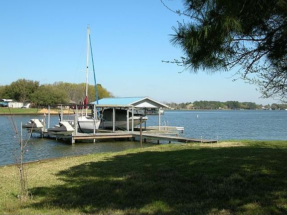 Cedar Creek Lake near Dallas, great recreation area. 200 feet of prime waterfront on a large protected cove with open water view and fenced yard on lakeside. House is about 100 feet from the water and in move-in condition. Features a large pier with a covered boat lift, a sailboat lift and 2 PWC lifts. Pier and pilings replaced within past 2 years. Great views from a large deck connecting the master bedroom with a gazebo.Lots of glass from which to enjoy the lake views from inside. Large shade trees from which to enjoy sitting ouside or hang a swing while you watch the herons, egrets, white pellicans and loons. The house is at the end of a cul de sac with very good neighbors both permanent and week-enders. The interior is mostly remodeled inside with HVAC, roof and carpet new in past 3 years and freshly painted throughout. One of the baths has a recently restored "clawfoot type" tub with new "period" fixtures. We Will consider owner financing and possibly accept your house as a down payment or for full swap house for house if the location is right. The value of this property is in the length of waterfront, views and boatlifts. Home is at the end of a cul de sac with great neighbors in the area. Lawn sprinkler system with lake pump.