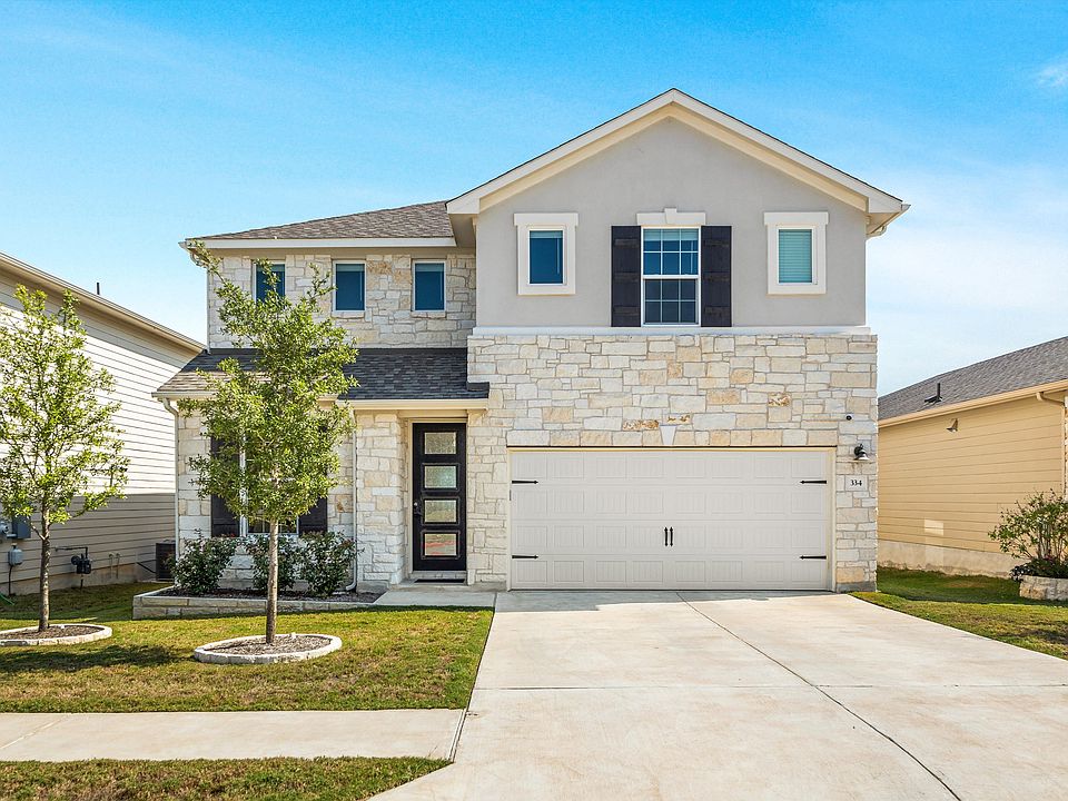 Better than new construction, as you don't need to buy a thing, all you have to do is move in! You don't even need to buy a fridge, window treatments, or TV's as they are already there. The layout is smartly designed with an office, three living spaces, and incredible under-the-stairs storage. Barely lived-in, energy-efficient home with spray foam insulation. The premium lot features an oversized backyard, hill country views, & a 40' green space buffer between you and other homes. Enjoy cooking in your gourmet kitchen with double ovens, a 5 burner 36" gas cooktop, and a generous-sized pantry. Kitchen also features black matte fixtures & hardware, beautiful 1.25" quartz counters, stainless appliances & upgraded cabinets. Downstairs is completely carpet-free with a designated office or dining space and an owner's suite. Upstairs features a new carpet, three additional beds, a game room & a media room. The garage has an epoxy floor, lots of additional shelving, and is plug-in ready for your electric vehicle. Restaurants, coffee shops, Founders Park, & HEB are all a very short distance from here! Community pool, playground, and a walking path to Founder's Park!