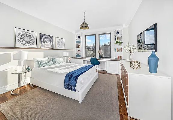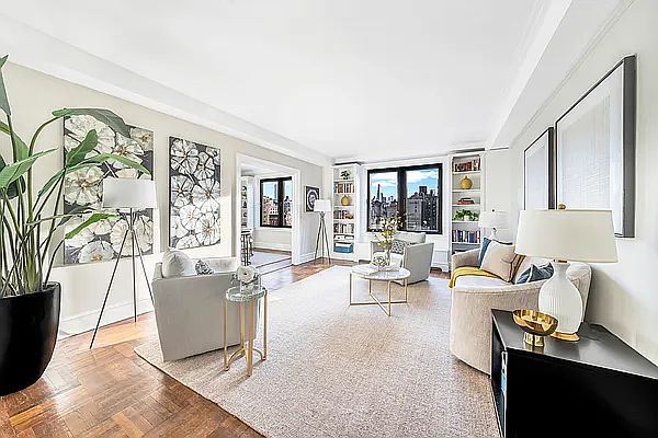 When it comes to Classic 6's, there is nothing more desirable than an intimate, boutique 45-unit Rosario Candela building off of Riverside Park. Built in 1924, 334 West 86th Street has only three apartments per floor. It epitomizes the classic style of a bygone era, and Apartment 11C with all its nooks and crannies, represents your opportunity to combine Gilded Age elegance with modern-day convenience. Enter through the gracious foyer that leads to a spacious, south-facing living room with 9-foot ceilings and sweeping city views. The living room is adjacent to a large formal dining room (also south-facing), and is ideal for dinner parties and entertaining. There are two oversized bedrooms, both offering southerly open city views, with the primary having its own windowed en-suite bath. The bathroom for the 2nd bedroom can also be used as a guest bath. The rare, corner staff room off the kitchen is currently configured as a home office/guest room with an adjacent W/D which can easily be converted back to a 3rd bathroom. This pet friendly building features a full-time doorman, live-in super, bike room, storage room (which conveys with the apartment), central laundry, and a beautiful landscaped roof deck. Finally, being that there is NO bus traffic on 86th Street between West End and Riverside, it is not only a picturesque block, but an extremely quiet one as well.