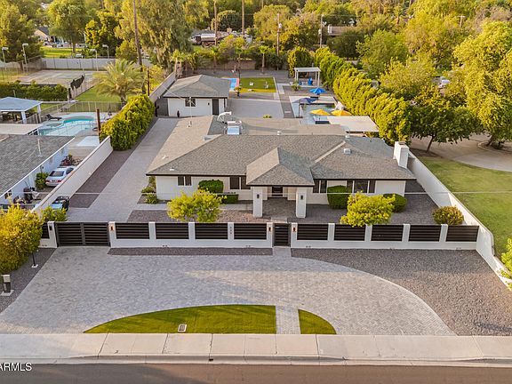 Discover resort-style living in this exceptional Phoenix retreat, where luxury, privacy, and thoughtful design meet. Privately gated with a paver circle drive, this beautifully updated home offers a spacious split floor plan and a full interior remodel completed in 2020. The primary suite is a true sanctuary, while the expansive backyard is designed for unforgettable entertaining with a heated saltwater pool and spa, travertine patios, Trex decking, full outdoor kitchen, and a dedicated sports court. Over $450,000 was invested in the outdoor living space alone. With a newer roof and HVAC systems from 2019 and a climate-controlled 4-car garage, this one-of-a-kind home delivers comfort, style, and performance at every turn. Upgraded throughout with modern finishes and thoughtful details, this home features a custom metal and block perimeter fence with an automated gate, a modern mailbox, and a professionally landscaped front entry. Inside, the split-wing layout enhances functionality and privacy, with a dedicated guest wing and a luxurious primary suite that includes a gas fireplace, bay window seating, a spa-style bath with soaking tub, large walk-in shower, dual vanities, and an oversized walk-in closet.