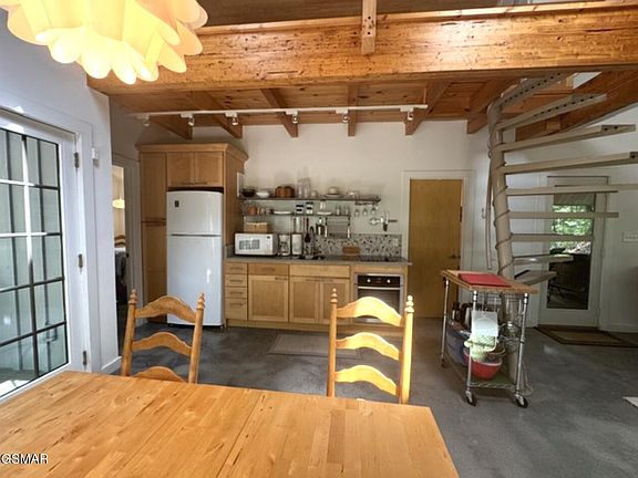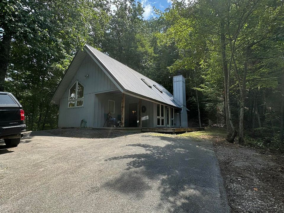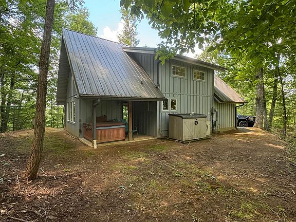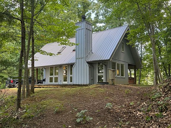 Unique home on a large 8.2-acre parcel. The home has a Contemporary European Minimalist Style to direct focus toward the serene 8-acre surroundings. Home has polished concrete floor on the mail level with front and back covered porches. The main level has a vaulted ceiling in the living room, open concept kitchen with master bedroom and full bath. The upstairs loft is accessed by a modern spiral staircase. This could be a rental gem, or it could remain a stylish family retreat. The STR permitting process is underway with required adjustments in the works.