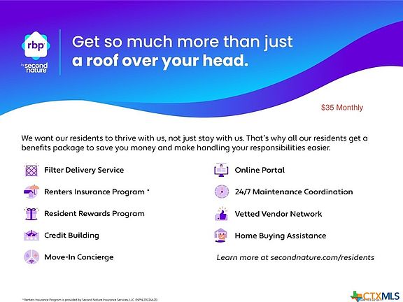All Hart Properties residents are enrolled in the Resident Benefits Package (RBP) for $35.00/month which includes liability insurance, credit building to help boost the resident's credit score with timely rent payments, HVAC air filter delivery (for applicable properties), move-in concierge service making utility connection and home service setup a breeze during your move-in, our best-in-class resident rewards program and much more! More details upon application.
